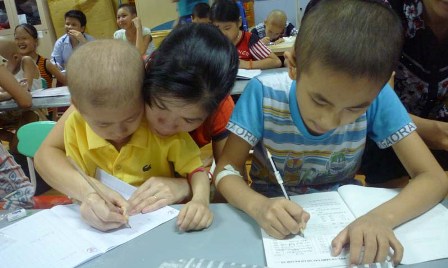 Las lecciones se imparten en un aula en el piso 6 del Instituto Central de Hematología y Transfusión de Sangre. Allí, los alumnos no solo adquieren conocimientos de Matemáticas y Literatura, sino también participan en actividades de pintura, danza y juegos infantiles como rompecabezas o con pelotas, cuentas con piezas plásticas y arena. Los padres de esos niños también pueden acompañarlos en esas clases, jugando con ellos y ayudándoles a estudiar para reducir el estrés y las preocupaciones sobre el proceso de tratamiento. Debido a la radioterapia, muchos infantes tienen poco pelo y la piel pálida, lo que conmueve a cualquier persona al verlos. Sin embargo, la alegría, pasión y ternura brillan en sus ojos cuando atienden estas clases. Con la paciencia, la dedicación y el amor de los “profesores” provenientes del club “Fe y Esperanza”, los alumnos se esfuerzan mucho para recibir nuevos conocimientos, olvidándose así del dolor de la enfermedad mortal que enfrentan diariamente y elevando su confianza en los buenos aspectos de la vida. Hoang Thi Thao, madre de uno de estos pequeños, expresó: “Estas clases son muy humanas y útiles porque llevan a los pacientes una esperanza de vida. Mientras, para los padres, son un espacio para divertirse con sus hijos”.