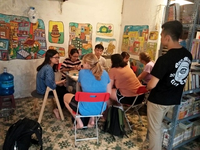 -“Supe D-Free Book a través de las redes sociales, pero entonces no me atreví a pedir libros porque creí que en Hanói no había nada gratis. Un día, mi amigo me sugirió que fuera a la biblioteca. Estoy realmente impresionado con el espacio sencillo, los colaboradores son muy amables”.