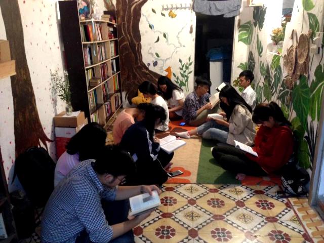 D-Free Book se sitúa en un pequeño callejón en el número 67 de la calle de Le Thanh Nghi, Hanói. Es difícil encontrar esta casa modesta de un solo piso entre los altos edificios, pero desde hace dos años, se considera la dirección fiable de numerosos lectores de disímiles edades en la capital vietnamita. Afuera está repleta de echeverias, un tipo de planta muy hermosa, puesto que, para su propietario, Hoang Quy Binh, simbolizan la vitalidad, e imágenes sobre el amor del ser humano a los libros. Adentro, en una superficie de solo 30 metros cuadrados hay dos estanterías y un espacio suficiente para actividades de intercambio y entretenimiento entre lectores y clases gratuitas de inglés y chino.