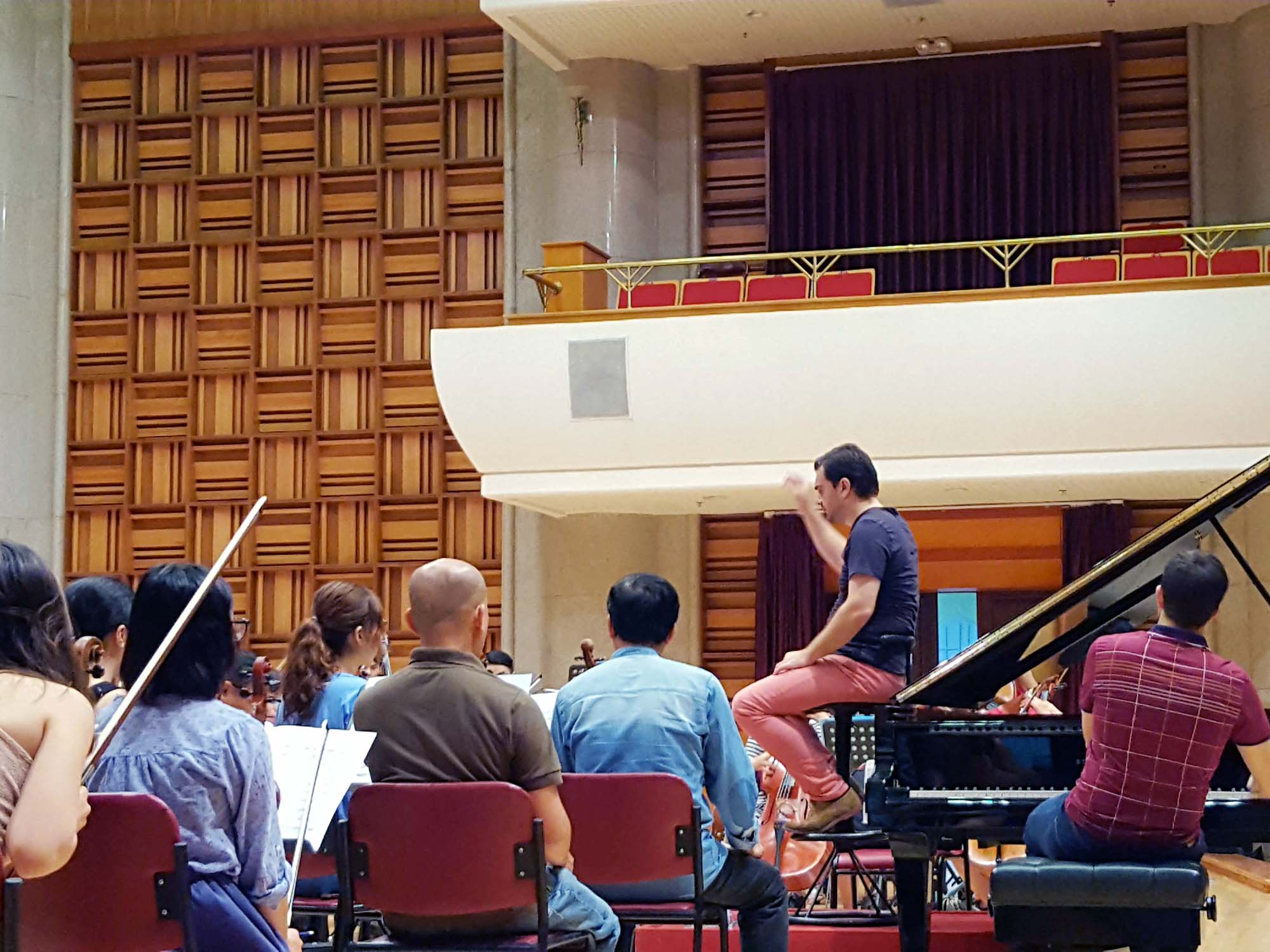 ![]() David Gómez Ramírez en un ensayo con la orquesta de la Academia Nacional de Música de Vietnam