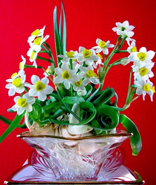 El narciso es una de las flores que se abren tempranamente en la primavera, simbolizando el talento, el bienestar, la prosperidad y la longevidad. Por ello, se le atiende con mucho cuidado para que florezca en el “giao thua”, último instante del año viejo e inicio del nuevo. Si hace mucho frío, los floricultores pueden echarle agua tibia al vaso o ponerlo en una habitación cerrada para que las flores se abran rápidamente. Por el contrario, si hace calor se utiliza la clara de huevo de gallina o la savia de la planta de fruta bomba para que sea más lento el florecimiento. Para tener vasos de narcisos hermosos se deben podar las hojas y crear figuras como las de un fénix que baila, un dragón en descenso, grulla que contempla, o hada que desciende. Realmente cada ramillete de flores es una obra artística ejecutada por manos hábiles. Por lo tanto, el disfrute del narciso es algo creativo y primoroso. El floricultor Dung agregó:“Un vaso de narciso es hermoso cuando la raíz es larga, blanca y limpia; las hojas se intercalan y las flores son altas. Los ancianos comparan el narciso con un plato de perlas, una taza de oro, que expele un aroma más seductor que cualquier perfume, sobre todo cuando abre en los días festivos primaverales.”