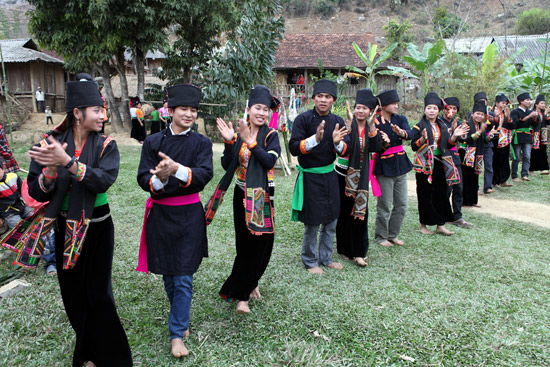 Como es costumbre, los pobladores locales ya no tienen que esperar por las fiestas para poder disfrutar de las canciones y bailes tradicionales de su etnia. Esto se debió a la voluntad del señor Quang Van Muon, secretario del Comité partidista de la aldea Ten, quien junto con personas prestigiosas de la localidad promovió desde el 2000 la fundación de un conjunto artístico de la aldea para salvaguardar el patrimonio cultural del olvido. El señor Muon contó: “Al principio participaron 20 personas, pero solo pudimos quedarnos con unas 16. Elegimos a los aficionados a la cultura autóctona que además son buenos en cantos y bailes y pueden dedicarse a los ensayos. Participan de modo voluntario en la enseñanza de los jóvenes uno o dos meses.”