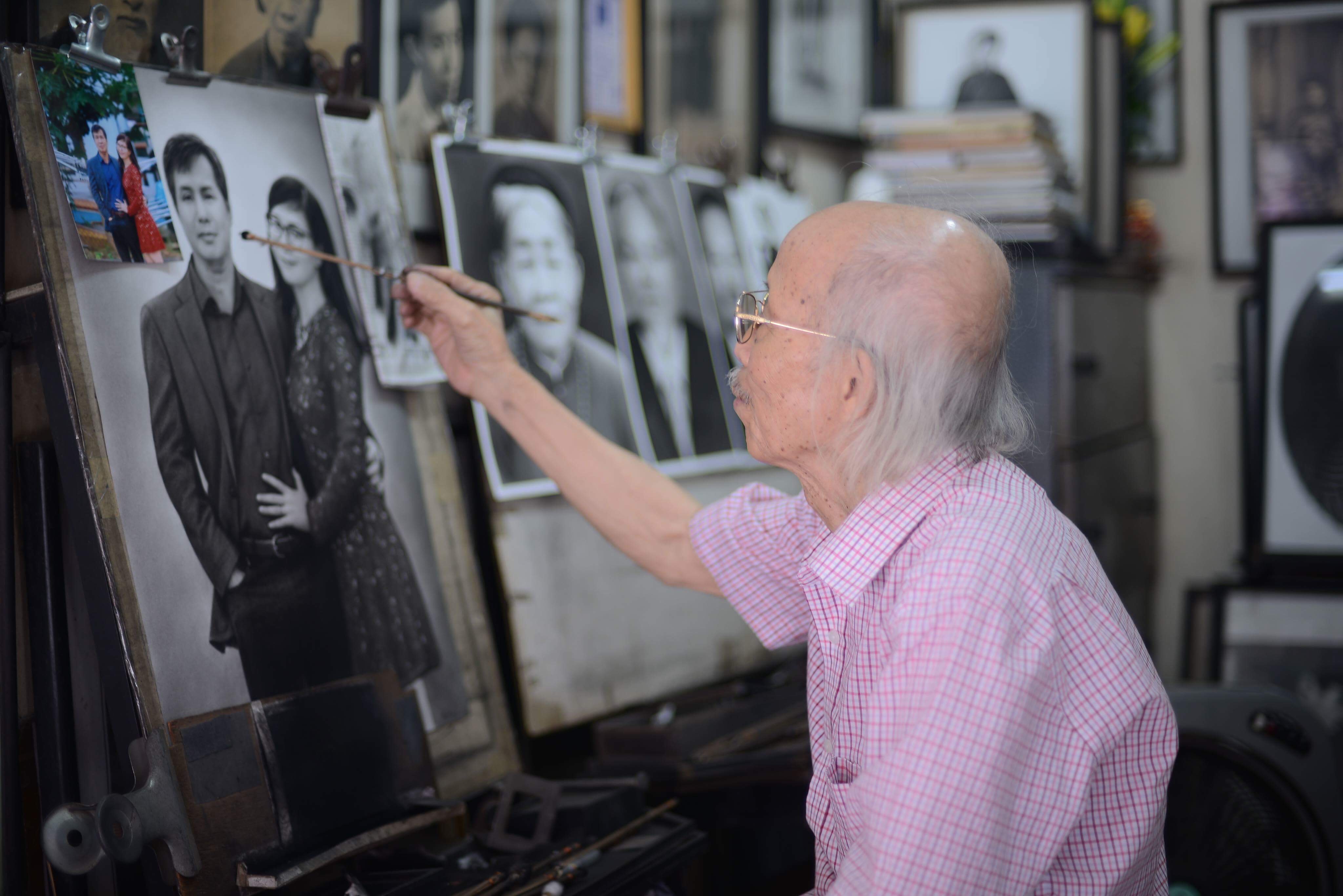 Cuidadosamente, estaba a punto de finalizar una pintura sobre una pareja, que se parecía exactamente a una foto que tenía a su lado. Él era Nguyen Bao Nguyen, un retratista de “ve truyen than”. Aunque ya tiene 83 años de edad, ha dedicado hasta 58 para realizar esta antigua profesión de la tierra capitalina. Pueden decir que es el más veterano de sus colegas, quienes siguen preservando hasta ahora el arte de “ve truyen than”, o sea, el dibujo de retratos a partir de las fotos, a pesar del fuerte desarrollo de las cámaras digitales.
