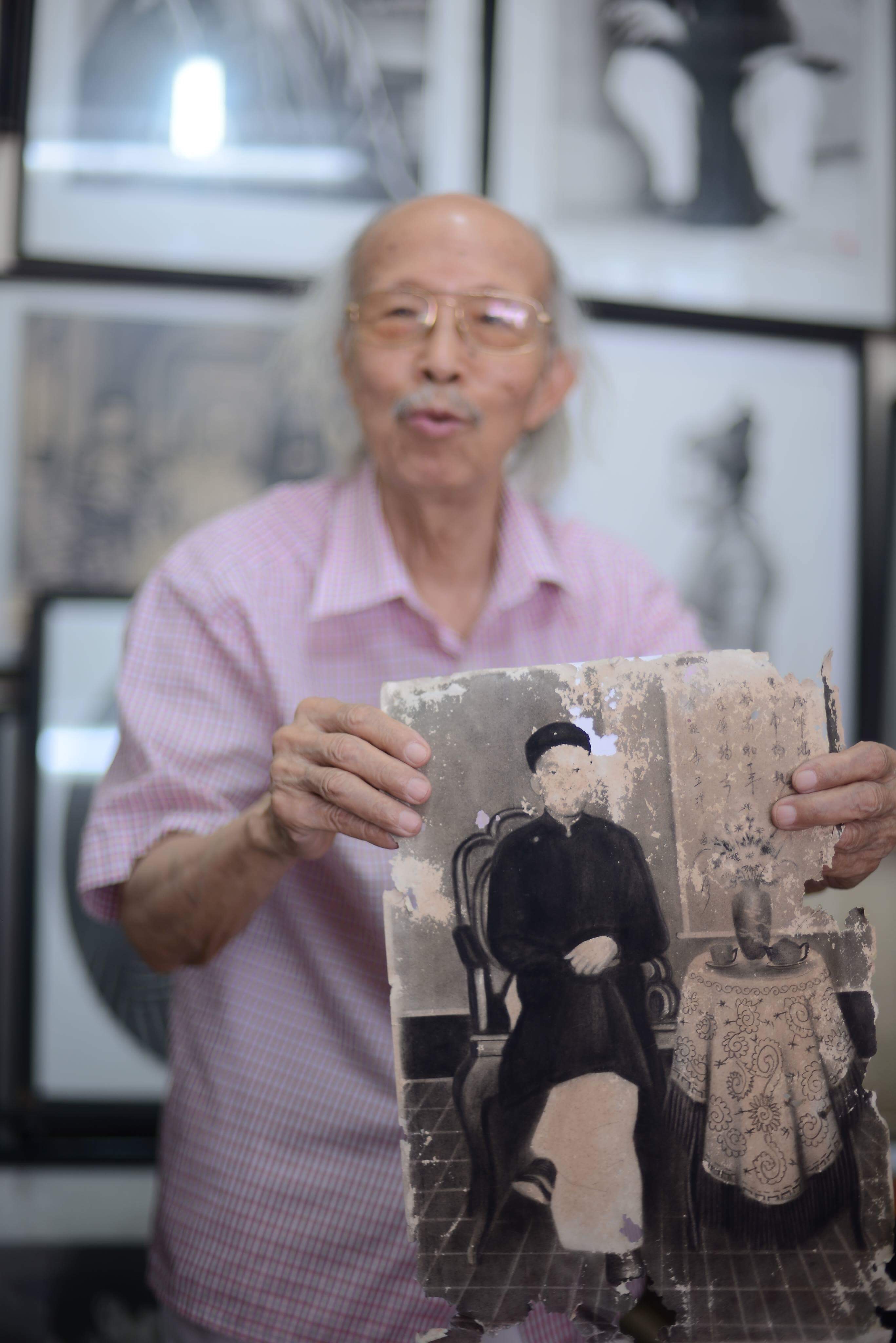 Para el señor Nguyen Bao Nguyen, el “ve truyen than” no es copiar desde las fotos, sino hacer a los espectadores sentir claramente el espíritu del personaje en la imagen. No es fácil, obviamente. Pero podría ser mucho más difícil cuando las fotos no se ven claramente debido a las manchas, caso que durante cerca de seis décadas de trabajo, este retratista ha encontrado muchas veces. Aún más, los clientes a veces le dan pedidos arduos, como que desde una cara de perfil tiene que dibujar una de frente. Pero todos estos requisitos han formado memorias laborales inolvidables para él. De ellas, recuerda más el caso del doctor Vu Tong Phan, quien vivió durante la época del reinado del emperador Minh Mang (1791-1841). Nguyen Bao Nguyen compartió: “Cuando su nieto Vu The Khoi, séptima generación, acudió a mí para pedirme un retrato funerario del doctor Vu Tong Phan, lo rechacé. Eso se debía a que cuando el último murió no tenía fotografía y por eso no había ninguna base para dibujarle. Sin embargo, como me insistía, luego acepté. Entonces, empecé a investigar sobre su vida. Al saber que Vu Tong Phan nació en 1800 y murió en 1851, me imaginé como se vestía en aquella época. También, porque fue pobre, su traje debía ser humilde, no lujoso. Además, consiguió el título de doctor cuando solo tenía 26 años de edad, debía ser muy inteligente y según la fisiognomía antigua, la gente ingeniosa tiene la frente ancha y él debería ser así. Mientras, al leer sus poemas que se conservan hasta ahora, percibía que era una persona muy divertida, un carácter que también tenía que reflejar en su pintura. Asimismo, tomé a Vu The Khoi como modelo, porque es familiar del doctor Vu Tong Phan. Finalicé el cuadro después de un mes de trabajo constante. Ahora, está en un templo en la provincia de Hai Duong.”