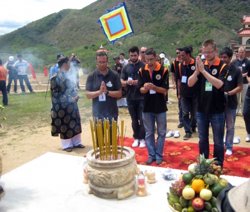Los participantes ofrendan inciensos en homenaje a los fundadores