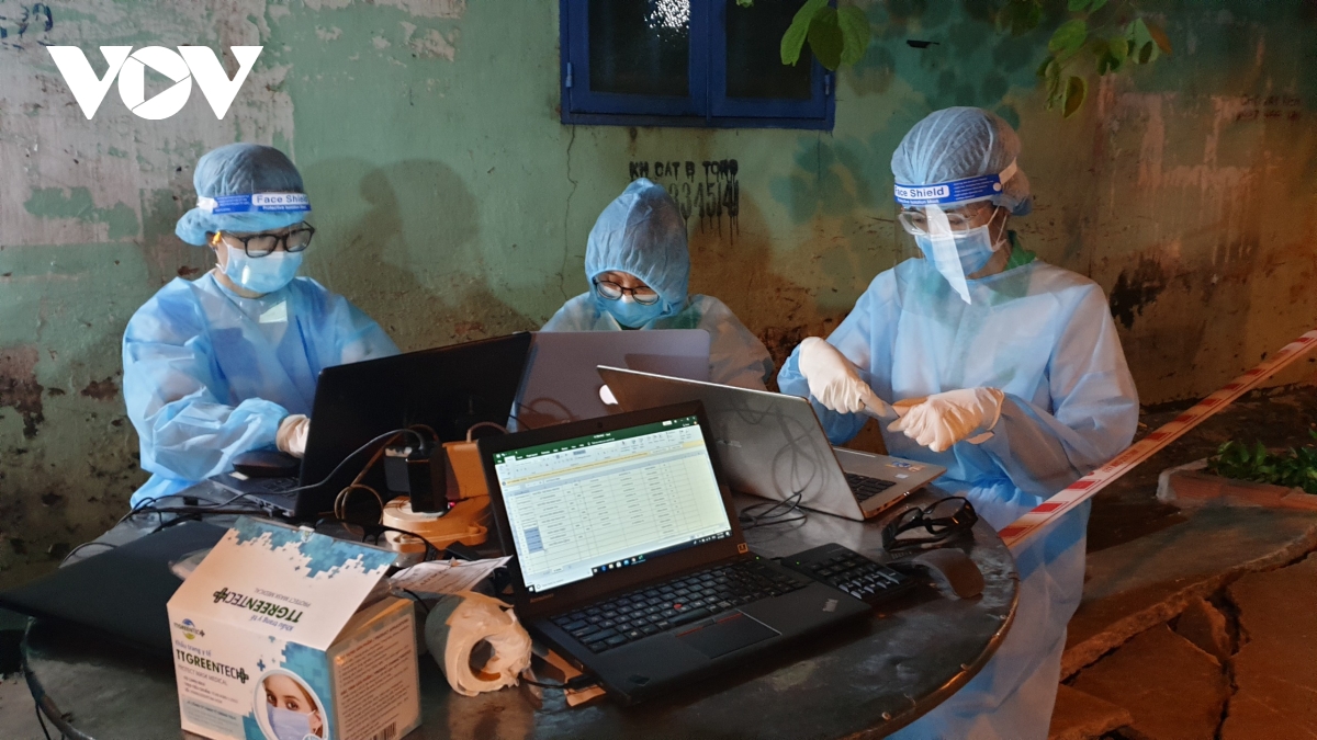 Estudiantes de Medicina de la Universidad Nacional de Ciudad Ho Chi Minh verifican datos de las muestras recolectadas para las pruebas de covid-19. |