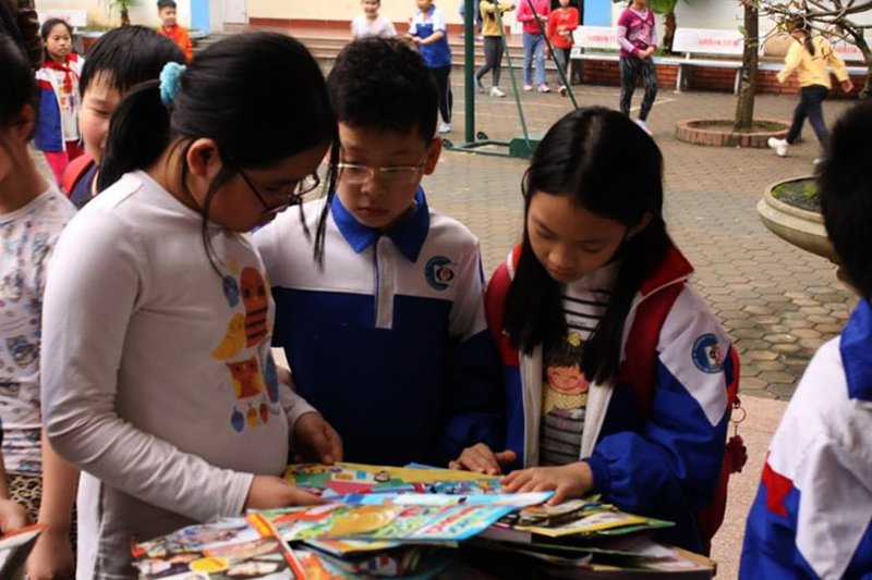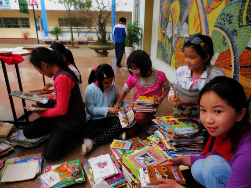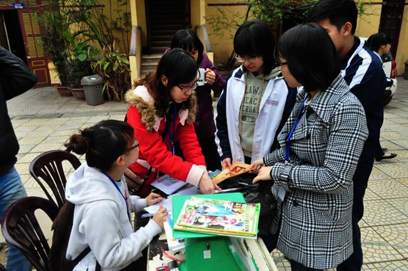 Una semana antes del acontecimiento “Hora del Planeta 2014”, la organización 350 de Vietnam, rama del norte, adscrita a la Universidad de Comercio Internacional de Hanoi ha promovido el programa “Biblioteca en miniatura” para equipar a los alumnos de la escuela primaria Doan Thi Diem y la secundaria Ngo Sy Lien los conocimientos básicos sobre los efectos negativos del cambio climático a través de videos cortos y diapositivas vivas, cuentos infantiles sobre la preservación ambiental y juegos interactivos. Nguyen Ngoc Linh, vicepresidenta de la organización 350 Vietnam, rama del norte presentó el programa “Biblioteca en miniatura”: “Proponemos al rectorado y al profesorado que divulguen este programa en cada clase y después convocaremos una reunión general para la propaganda. Cuando los alumnos cambian libros por plantas, sus libros serán enviados a una biblioteca comunitaria para los niños pobres en la ciudad de Hai Phong. La proporción es de 10 libros por una planta. Al principio, esperamos recopilar de 2 mil a 3 mil libros pero hasta la fecha, el número alcanza 6 mil”.