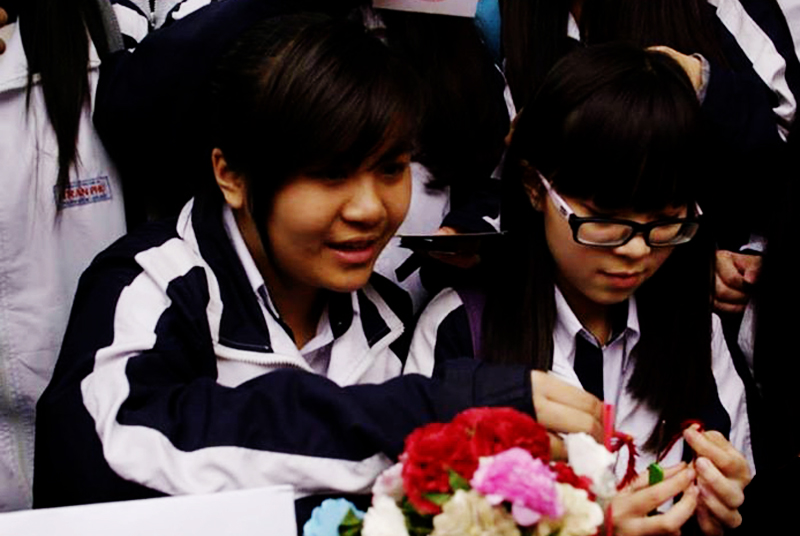Alumnos de escuela secundaria juntan flores