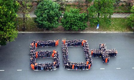 Cerca de 3 mil voluntarios se reúnen para formar el símbolo 60+ en la Universidad de Tecnología de Hanoi