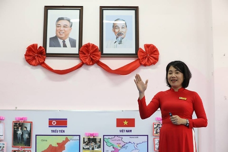 Agregó: “Mantenemos buenos lazos con la Embajada de Corea del Norte. Nos invita a visitarla en ocasión de las grandes efemérides de su país, mientras funcionarios diplomáticos vienen a felicitarnos en las celebraciones importantes de Vietnam o fechas especiales como la inauguración del nuevo curso escolar, el Día de la Independencia y la fundación de la escuela. En 2004 y 2005, Corea del Norte envió algunos maestros a nuestro establecimiento para impartir sesiones de música a los alumnos de las clases de Kim Il-sung y Kim Jong-il”.