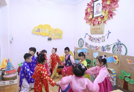 En el parvulario Vietnam-Corea del Norte vemos a las maestras y alumnas en el Ao Dai y el hanbok, trajes tradicionales de ambos países, y escuchamos canciones en ambos idiomas. Después de 41 años de formación y desarrollo, este centro de educación infantil sigue siendo un punto radiante de la amistad binacional.