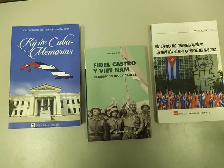 (Desde la iz.) Los libros "Memorias sobre Cuba", "Fidel Castro y Vietnam, recuerdos inolvidables" y "La independencia, el socialismo y la actualización del modelo socialista en Cuba" son nuevas publicaciones que contribuyen a fortalecer las relaciones especiales binacionales. (Foto: Facebook "Ky uc Cuba-Memorias") |