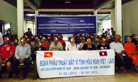 (VOVworld) -Desde el 24 al 28 de agosto, galenos vietnamitas efectuaron, de manera gratuita, consultas, tratamientos y cirugías a veteranos de guerra, a sus familias y a personas de bajos recursos, en la capital laosiana. Esta importante actividad fue organizada por las Asociaciones de Veteranos de Vientiane y de Ciudad Ho Chi Minh, en coordinación con el Hospital de Ojos de Ciudad Ho Chi Minh y el banco Vietinbank, siendo esta la cuarta vez en los últimos ocho años que dicho Hospital ha enviado a sus excelentes médicos a ayudar a ciudadanos necesitados en distintas localidades del vecino país.