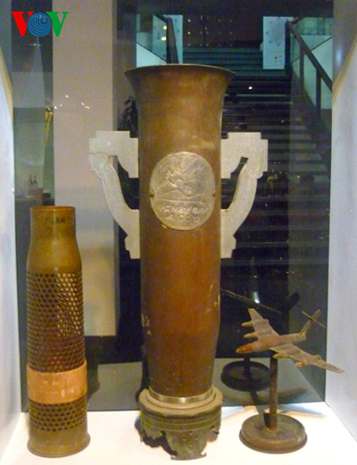 (VOVworld) - Se celebra actualmente en el Centro Cultural Francés, en el número 24 de la calle Trang Tien, Hanoi, una exposición especial de objetos recopilados de la pasada guerra en Vietnam como fragmentos de aviones, sacos de arenas y cartuchos de disparos fabricados hábilmente en utensilios o juguetes.