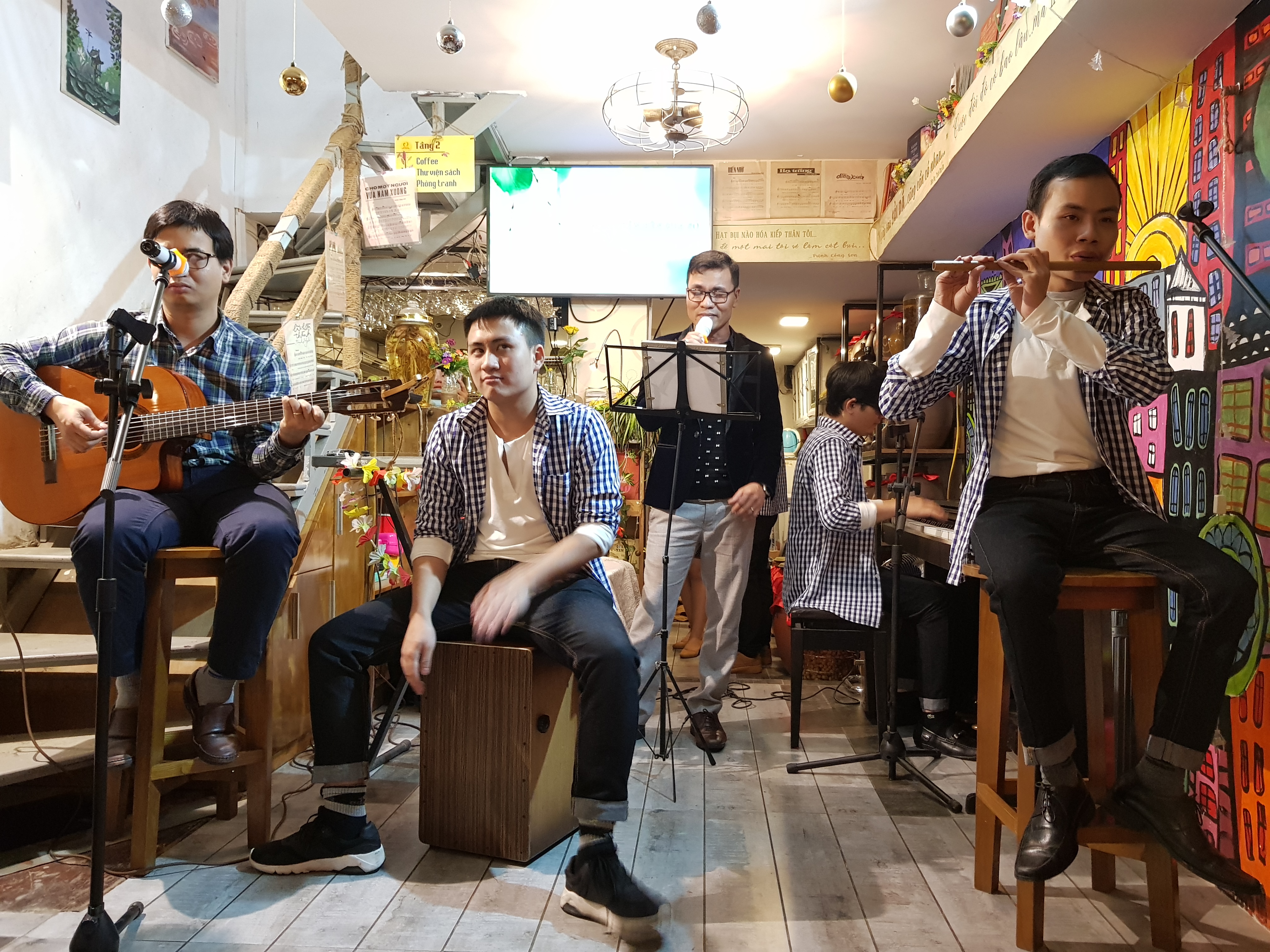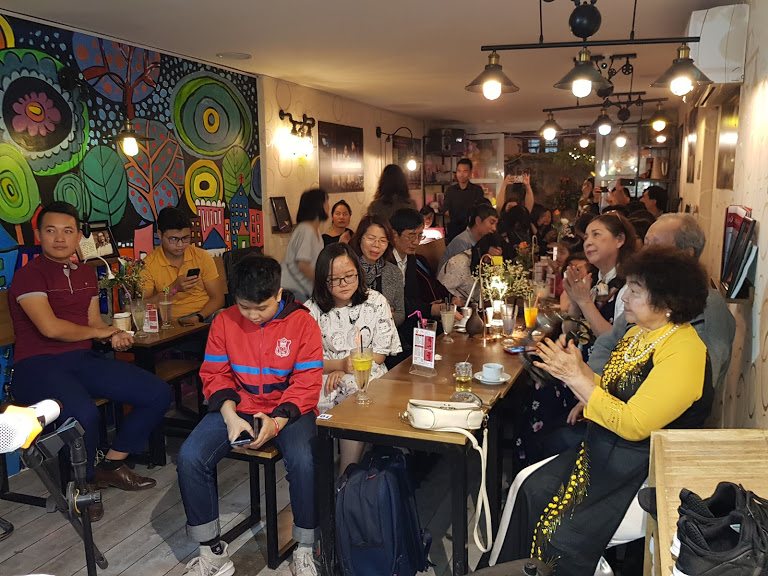 Como de costumbre, todos los viernes, este local de unos 40 metros cuadrados está lleno de gente, de manera que no hay suficientes sillas para todos y los camareros tienen que sacar más afuera. Es entonces cuando se efectúan las noches de música en directo con el fin de movilizar donaciones para los menores en las zonas montañosas y remotas, a fin de ayudarles a tener una vida mejor con todas las condiciones educativas y médicas que se merecen.