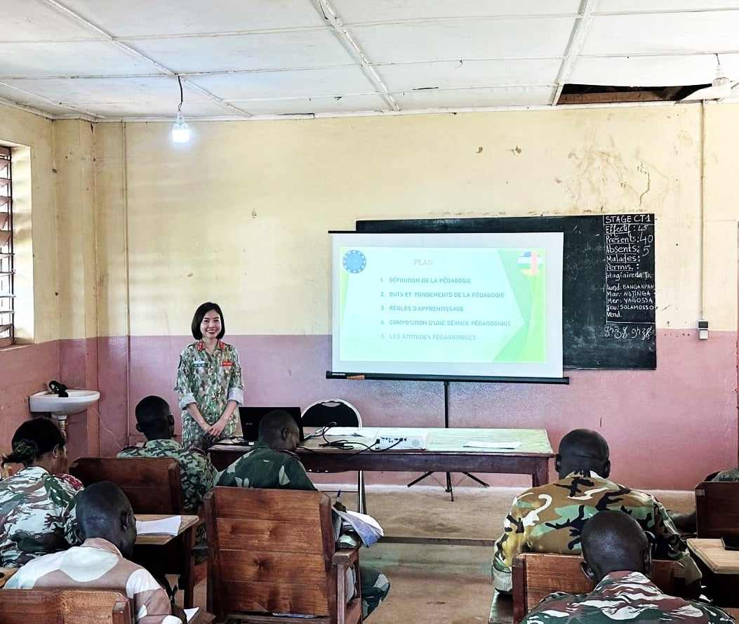 En la República Centroafricana, la teniente coronel Vu Thi Lien está impartiendo clases de francés a las fuerzas armadas locales. Ella es la primera oficial de Vietnam asignada desde diciembre de 2022 para la Misión de la Unión Europea (UE) en la República Centroafricana orientada a la formación y la reforma de sus Fuerzas Armadas (EUTM RCA, siglas en inglés).