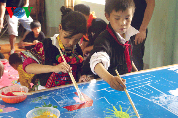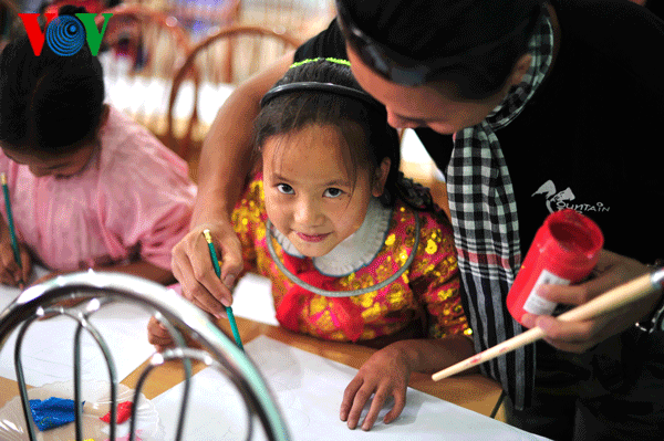 Tiempo de practicar dibujo es el más favorito de los niños en las comunas de Lung Cu, Dong Van y Ha Giang. |