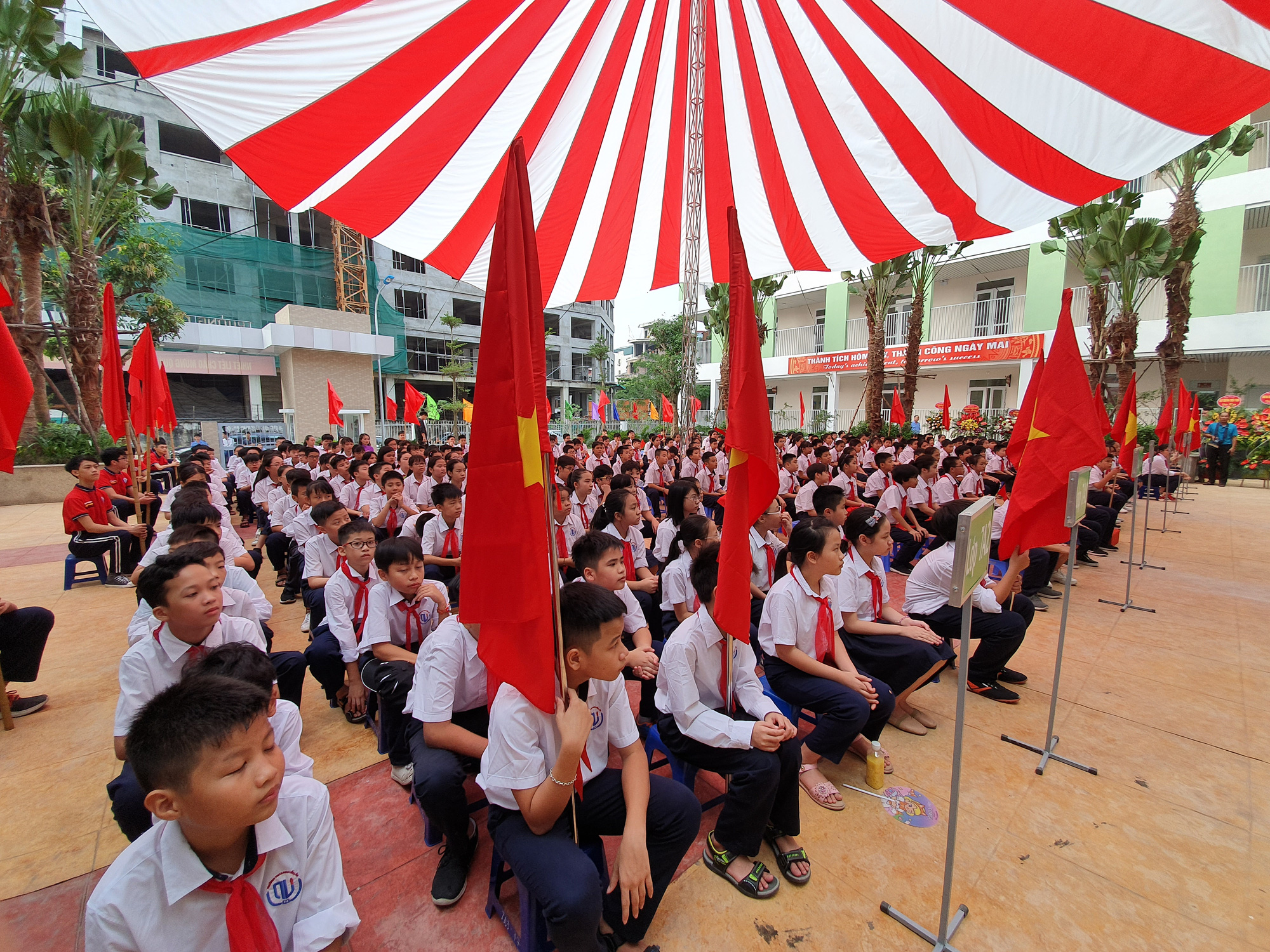 La ceremonia de bienvenida a los alumnos para el nuevo curso escolar 2020-2021 en una escuela en Hanói (Foto: danviet.vn) |