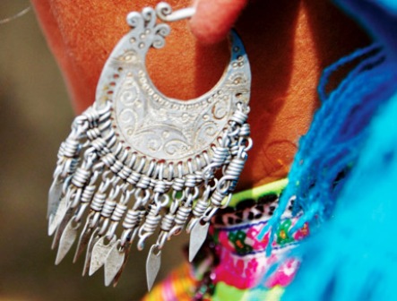 Según las costumbres de la etnia Mong, sobre todo para las mujeres, los pendientes no son simplemente una joya de adorno, sino que contienen los valores culturales que reflejan las tradiciones y la identidad propia de su etnia. Los aretes están hechos de plata blanca y varían en el diseño tanto sencillo como recargado. La mayoría tiene forma redonda y en ellos se encuentran símbolos de los dioses o genios de los Mong, el sol y la luna. La señora Mua Thi My, barrio de Xim Vang, distrito de Bac Yen, dice: “Desde pequeña ya llevaba zarcillos. Eran heredados por mis padres. En las fiestas acostumbramos ponernos los más bonitos.”