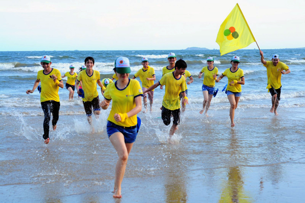 Viajar en combinación o en “teambuilding” (es decir con espíritu de grupo) es una nueva tendencia por la que optan muchos turistas. Grandes grupos suelen elegir las playas centrales con este fin. Ante esta acelerada demanda, la compañía Phuong Nam Sun Travel ha diseñado programas en grupo muy variados destinados a clientes que deseen disfrutar de la playa y al mismo tiempo de la interesante experiencia de conocerse mejor a ellos mismos y a sus compañeros. La directora de dicha entidad, Nguyen Tien Hao, comparte: "A la clientela de Phuong Nam Sun Travel le recomendamos la opción de hacer turismo relajado combinado con actividades en grupo y una cena de gala, con el objetivo de solidarizarse y conectarse mejor entre sí. En la vida cotidiana mucha gente se comunica con los demás por simple necesidad, pero en “teambuilding” se experimenta mejor la conexión mutua. El hecho de que en un programa los participantes se animen a subir al escenario para darse a conocer garantiza el éxito de ese tour. Esa muestra de un mejor vínculo entre dichos miembros nos hace sentir muy felices".