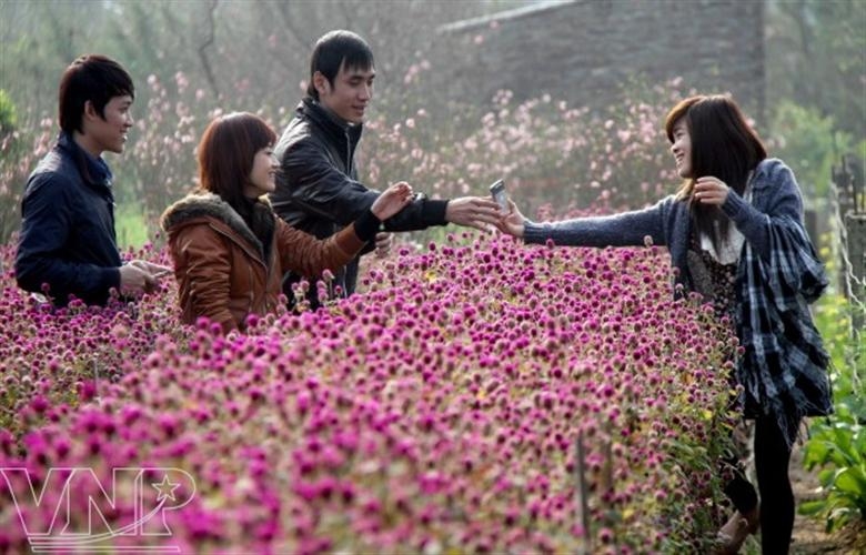 Las flores en Nhat Tan se abren un poco más temprano que en las temporadas anteriores por el tardío invierno. Crisantemos, margaritas, lirios, claveles y otras variedades que florecen casi al mismo tiempo por estos días, formando un atrayente mar de colores. Para los jóvenes hanoyenses, este es el momento apropiado para inmortalizar en fotos la primavera y los tiempos mozos. Los jardines de Nhat Tan reciben cada día varios grupos de visitantes y aficionados del arte fotográfico. Le Huyen, una estudiante de la Universidad de Comercio y Tecnología de Hanoi compartió: “Venimos aquí para tomar fotos en los famosos jardines de melocotonero de Nhat Tan. El Tet se está acercando y queremos guardar buenos recuerdos con la flor tradicional del país en esta ocasión especial. Apenas entrando en la puerta de la aldea, ya vimos una pintura multicolor hecha con diferentes tipos de flores.”
