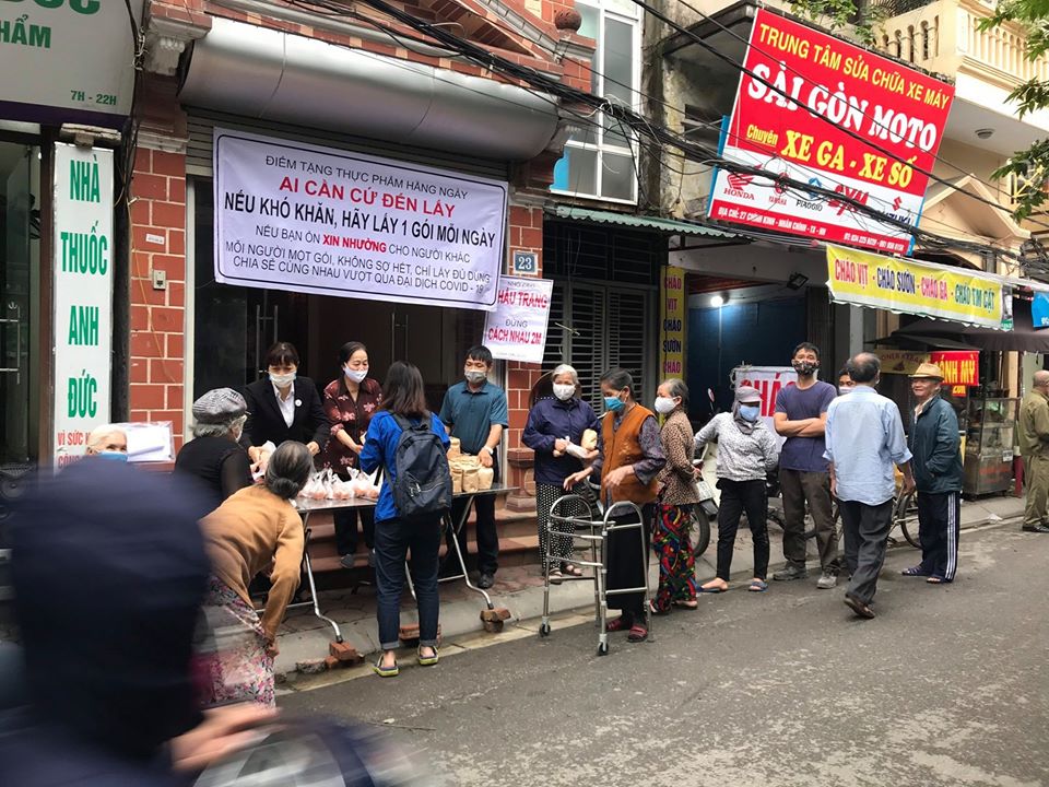 La primera fase del programa “Tómalo si lo necesitas”, promovido por el empresario Nguyen Phan Huy Khoi y su esposa, se desplegó durante el mes de abril en el distrito de Dong Da, Hanói, desde donde miles de porciones alimentarias gratuitas fueron distribuidas a los necesitados en más de 60 distritos de la capital. La enorme cantidad de alimentos fue donada por colegas y amigos de Khoi que son inversionistas en múltiples sectores, así como bondadosos que supieron de esta iniciativa a través de redes sociales.
