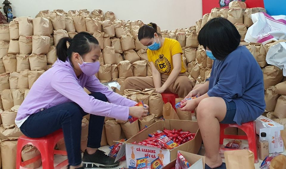 Voluntarios ayudan a preparar paquetes alimentarios (Foto: Huy Khoi) |