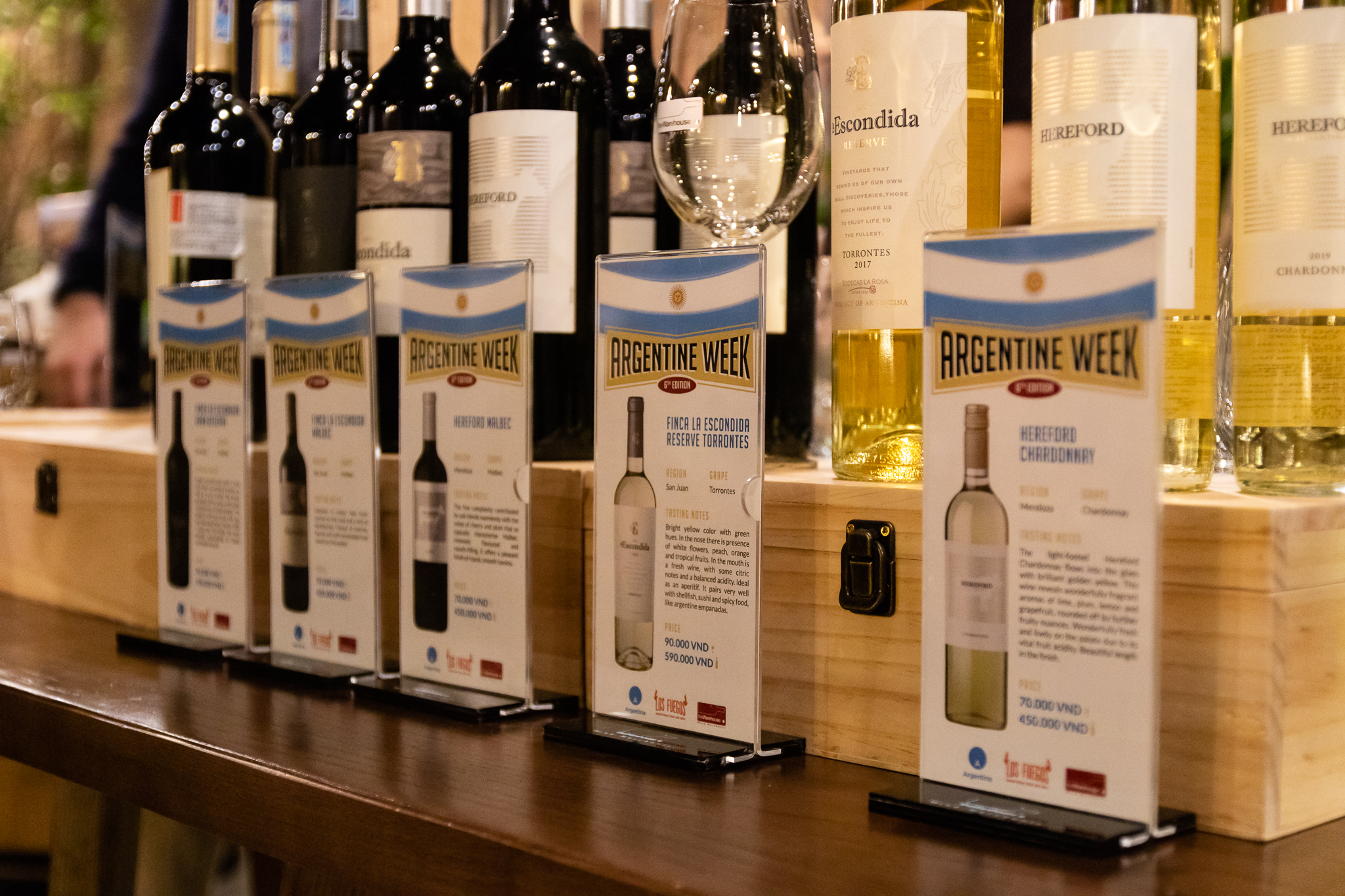 Al asistir al evento, los comensales disfrutaron de forma gratuita de vinos finos de diferentes tipos como blanco y rosado hasta tinto tradicional de las principales empresas exportadoras argentinas como Vincorp, Warehouse o Daloc. Théo Haquet, representante de Warehouse, dijo: “Asistimos a este evento, primero para brindar bebidas con los fabulosos platos de Los Fuegos. En segundo lugar, y lo más importante, es que queremos presentar a los asistentes los mejores productos vinícolas. Traemos al evento ocho vinos finos importados de Argentina. Además, nos gustaría presentar dos de las uvas más famosas del país sudamericano para elaborar esta bebida: Malbec para vino tinto y Torontes para blanco”.