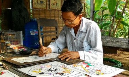 Dejando las tareas del campo a un lado, los naturales de la comuna de Sinh, barrio de Phu Mau, distrito de Phu Vang, también están acelerando la producción de cuadros tradicionales antes de Tet. Luego de unos 500 años de historia, los cuadros populares hechos en este poblado se usan en los ritos de ofrendas y rezos en las ocasiones especiales como en luna llena, el primer día de mes y el año nuevo lunar; y son muy variadas, desde retratos hasta bodegones. La técnica es imprimirlas sobre moldes ya hechos y luego colorearlas. El gran artesano Ky Huu Phuoc, quién ha dedicado a esta labor más de seis décadas, comenta que aparte de las obras para ofrendas, recientemente también producen cuadros ornamentales y calendarios de pared sobre el papel especial “do” para fines turísticos: “Estos productos de Sinh son en su mayoría ofrendas, los compran para ponerlas en el altar y luego los queman. Siempre han sido muy demandados, y en la temporada alta, la oferta no puede compensarse con la alta demanda, puesto que se distribuyen no solo aquí sino también en otras provincias como Quang Binh, Quang Tri, Quang Nam y Quang Ngai”.