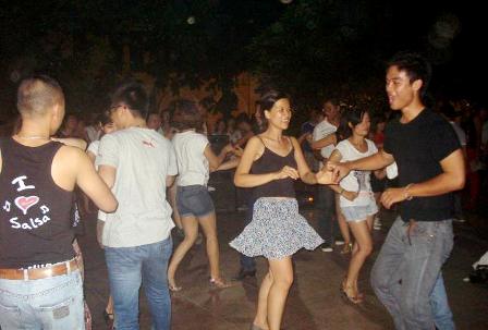 Cada segundo sábado del mes a las 8 y media de la noche jóvenes de diferentes clubes de Salsa acuden ante el céntrico monumento del rey Ly Thai To en Hano, y bajo la luz de faroles, las parejas bailan en grupo relajados a tono con el ritmo y las melodías. Los salseros suman hasta cientos. De diferentes entornos laborales y estudiantiles comparten su pasión por el baile. Phung Phuong Ngan, oficinista en Hanoi dijo: “Practico Salsa hace dos años. Participo en esta actividad porque en mi opinión aquí el espacio es más abierto que en los bares y clubes frecuentados sólo por salseros con mayor dominio de los pasos y figuras que lleva. En cambio, la práctica de este baile en los parques atrae a principiantes o quienes no tienen idea sobre su ejecución y así los salseros se sienten más animados”.