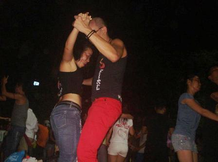 Cuando resonaba la música de Salsa, apareció una turista de Brasil, llamada Ana Flavia Pimenta Braasch junto a unos amigos. Como la Salsa goza de gran acogida en su tierra natal de, Ana se ha metido de lleno en este baile y para ella, no resultaba difícil incorporarse a los que bailaban entusiastamente: “Me gusta mucho esta actividad porque la Salsa tiene una gran presencia en América del Sur, de donde provengo. Qué gusto ver y participar en su baile aquí, a una distancia de media vuelta del globo para llegar a mi país”.