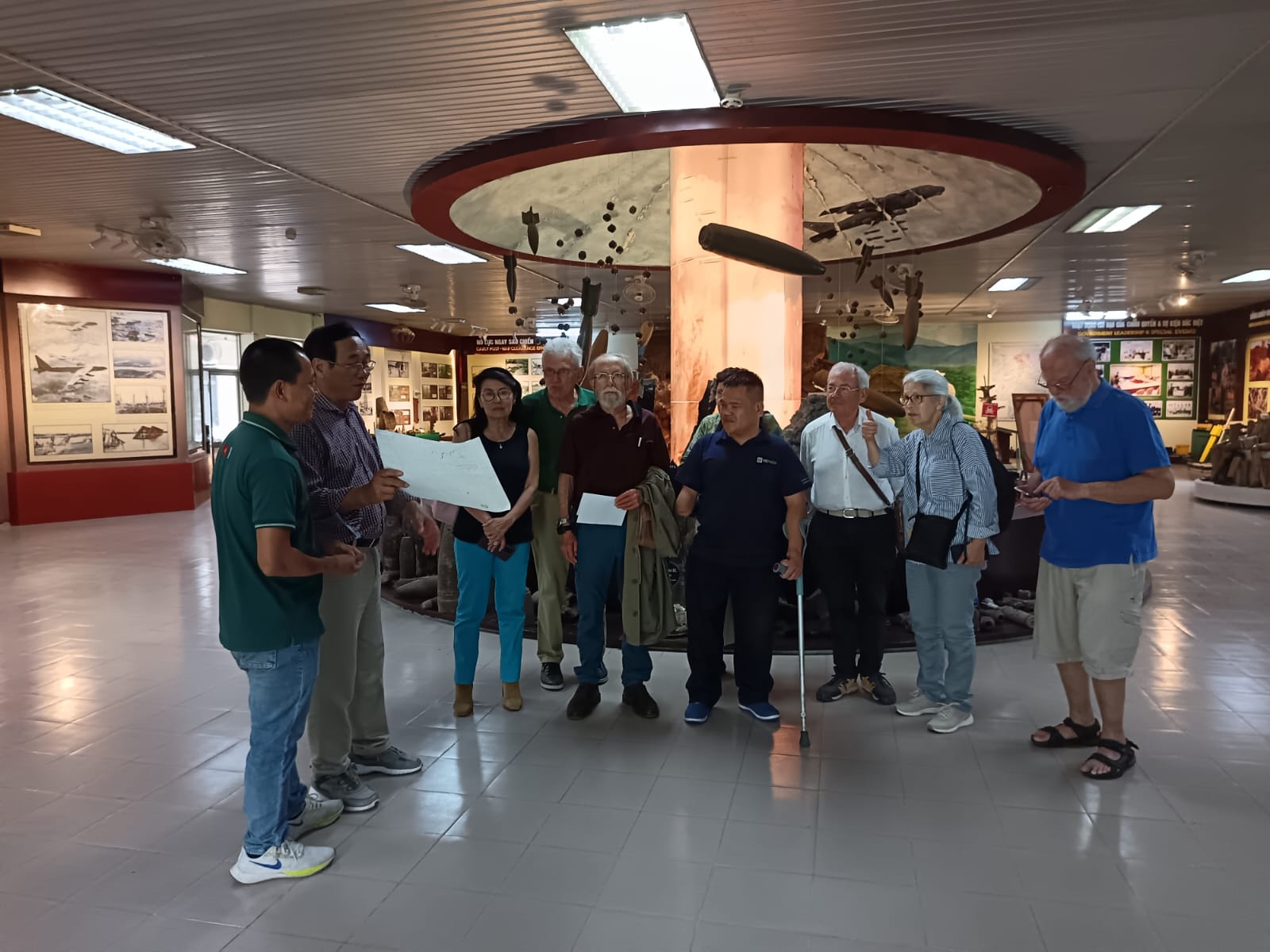 Los visitantes extranjeros, atentos a emotivas historias sobre la guerra y los esfuerzos del pueblo vietnamita para superar las consecuencias de pasados conflictos bélicos. (Cortesía de José Luis Herce) |