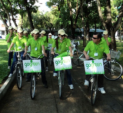 “Go Green” nació en mayo de 2008, cuando el Club de Jóvenes Voluntarios recorrió en bicicleta numerosas localidades para ayudar a las familias de víctimas del agente naranja/dioxina, y hacer obras caritativas sociales. Desde sus primeros 300 miembros, hasta la fecha, esta organización se ha desarrollado en todo el país con la participación de decenas de miles de personas y tiene bases en casi todas las provincias. A través de las actividades prácticas, los integrantes del "Itinerario verde" han enseñado habilidades y conocimientos positivos al pueblo. Le Thanh Nam, fundador de esta institución, dijo: “2011 fue el primer año en que nuestra organización cambió su actividad de pedalear a caminar por el país con la asistencia de mil jóvenes. En este recorrido llevamos a cabo numerosas actividades útiles con la participación de más de 100 mil personas. Nuestra delegación otorgó 5 aulas de computadoras a 5 provincias, 48 laptop a los alumnos pobres y 100 regalos a las víctimas del agente naranja/dioxina ”.