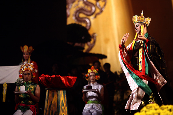 El monje budista Thich Thanh Phuong interpreta en una escena del teatro popular