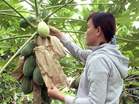 Mientras, en la comuna de Phu Huu y en la cabecera de Nga Sau, del mismo distrito, las papayas y las guanábanas también han sido modificadas. Nguyen Thi Uom, de la aldea de Phuoc Thuan, en la cabecera de Nga Sau, dijo que su poblado cosechó cerca de mil 400 papayas de dicho tipo y todas fueron adquiridas por los comerciantes. Esta productora comentó: “En la bandeja del Tet, los compatriotas del sur suelen poner guanábanas, papayas y mangos. Todos son verdes y amarrillos. Así, un día nos preguntamos ¿por qué no usar las variedades de papaya con cáscara amarrilla con las palabras “Prosperidad”, “Suerte”, “Felicidad” y “Longevidad” en verde?. De esta manera, las bandejas del Tet serán más vívidas y atractivas. Normalmente, lo hacemos con esas cuatro palabras pero podemos atender pedidos específicos de los clientes. Este año, probamos también en las guanábanas.”