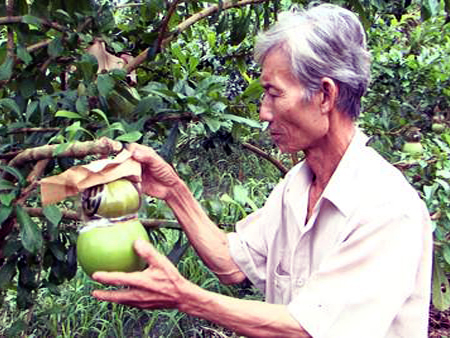 En 2009, el señor Vo Trung Thanh fue el primero que lanzó al mercado los pomelos parecidos a una botella de vino con forma de calabaza en el Delta del río Mekong. Se trataba de un gran trabajo investigativo y una prueba con esta fruta típica de la localidad conocida como pomelo Nam Roi. Esta presentación le aportó enormes ingresos, decenas de veces mayor que los que siempre obtuvo. Desde entonces, Vo Trung Thanh, junto con otros miembros del Club de creación de formas para frutas de la aldea de Phu Tri A, en la comuna de Phu Tan, ha seguido desarrollando otras versiones de su producto, con las palabras “Prosperidad”, “Suerte”, “Felicidad” y “Longevidad” o imágenes de moneda, lingotes, o una mano de Buda, visibles en su corteza exterior. Cada año, los integrantes de la agrupación suministran al mercado del Tet unos 10 mil pomelos modificados y obtienen miles de millones de dongs. En 2017, ha vendido casi 3 mil de este fruto, a un precio que va desde unos 400 mil dongs (17,5 dólares) hasta un millón 100 mil dongs (48,5 dólares) cada uno. Vo Trung Thanh comentó lo siguiente: “Tratamos de producir hasta entre 10 y 15 mil pomelos. Sin embargo, debido a las malas condiciones climáticas, solo podimos cosechar 2 mil 900. Nos quedan 200, todos son del nuevo modelo para este año.”