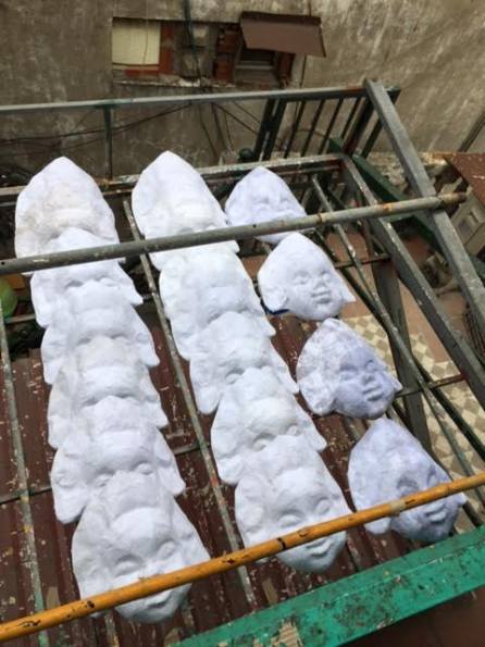 De hecho, una máscara de cartulina debe pasar muchos procesos para considerar que está terminada. Primero, deben acumularse los papeles. Luego, todos son cortados en trozos pequeños para poner capas y capas en los moldes de cemento prefabricados con forma de caras alegres. Los artesanos lo aplanan presionando y lo preparan para darle la figura exacta que desean. Después, lo sacan del molde, que ahora se llama embrión, y lo colocan al sol durante días para garantizar su calidad.
