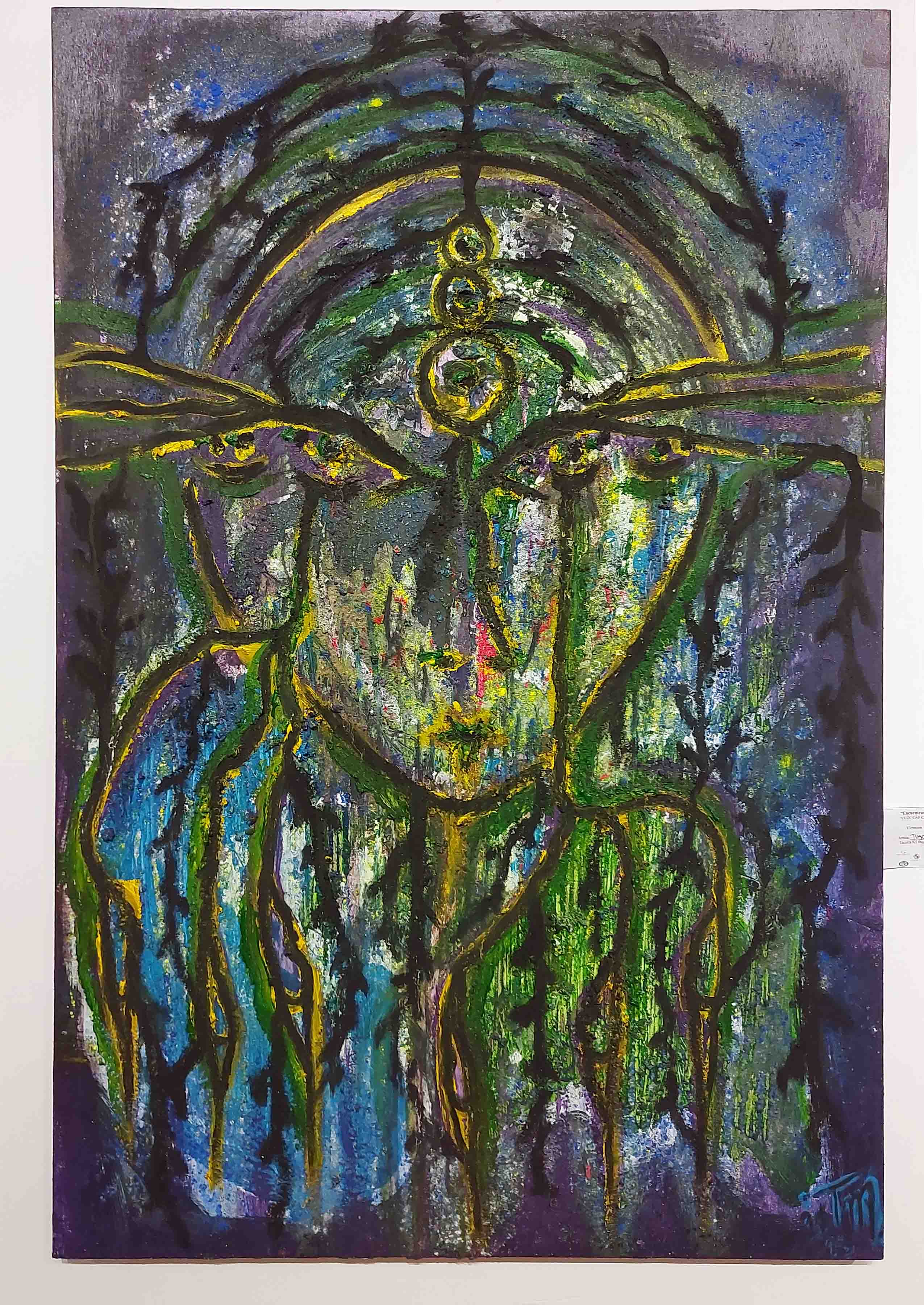 Estas son obras creadas por el artista Yandi Monardo, sus colegas y muchos estudiantes de arte de Vietnam utilizando una técnica especial. Los artistas pueden espolvorear arena, esparcir colores, utilizar adhesivos y clavos para crear trazos y efectos de superficie y, al mismo tiempo, mezclar colores y crear texturas. Incluso, después que la pintura se haya secado por un tiempo, aún se puede continuar dibujando en la superficie de esa misma obra. Según Yandi Monardo, los materiales que utilizan son muy familiares en Vietnam.