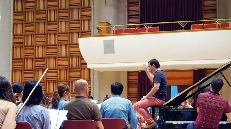 Director David Gómez Ramírez y la orquesta de la Academia Nacional de Música de Vietnam
