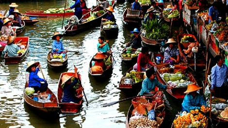 Mercado flotante de Cochinchina en el seno de la capital