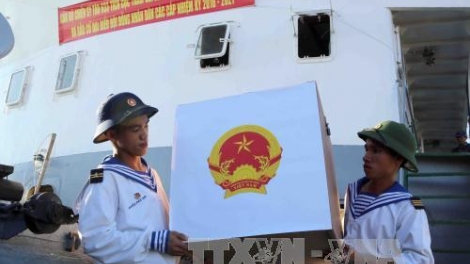 (VOVworld) – Este jueves, dos barcos de la Marina de Vietnam partieron del puerto militar de Cam Ranh, en la provincia de Khanh Hoa rumbo al archipiélago de Truong Sa, llevando urnas, papeletas, tarjetas de votación, cuños de las circunscripciones electorales, la lista y bibliografía de candidatos en aras de desplegar los comicios de la Asamblea Nacional en su decimocuarta legislatura y del Consejo Popular local, período 2016- 2021.