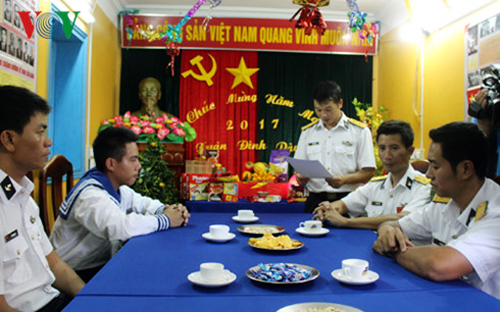 (VOVworld) – A pesar de estar situado a cientos de millas náuticas del territorio continental, el distrito insular de Truong Sa, de la provincia central de Khanh Hoa, celebra el Tet (Año Nuevo Lunar) con prosperidad, como lo hacen los demás compatriotas en todo el territorio de Vietnam. En medio de dificultades como un clima extremo y la añoranza, los soldados y habitantes de dicha isla de vanguardia de la patria disfrutan juntos una nueva primavera cálida y floreciente.
