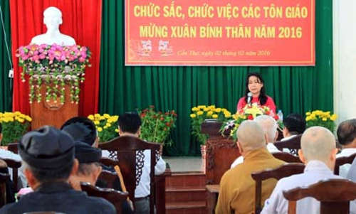 (VOVworld) – Gracias a los aportes de compatriotas locales, entre ellos, creyentes de diferentes religiones, la ciudad sureña de Can Tho cumplió el año pasado 15 de los 16 criterios de desarrollo económico con la reducción de la pobreza al 1,3%, lo que contribuyó a mejorar la vida de los habitantes étnicos y religiosos. Así lo afirmó la vicepresidenta del Comité Popular de la urbe meridional en una reunión entre altos funcionarios del Frente de la Patria y el Gobierno de Can Tho, con 120 representantes que son dignatarios de diferentes religiones en la localidad.