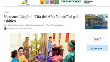 (VOVWORLD) - La tradición de las fiestas del Nuevo Año Lunar en Vietnam protagonizo un artículo publicado en la pagina web del periódico uruguayo Grupo R Multimedio.