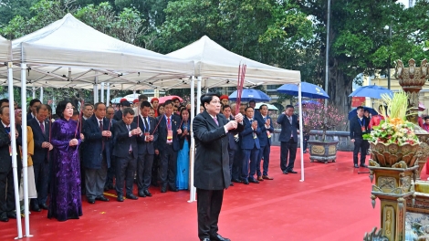 (VOVWORLD) - El presidente Luong Cuong y su esposa, junto con los connacionales que recientemente regresaron desde sus países de residencia para asistir al programa “Primavera de la Patria” 2026, ofrendaron inciensos hoy ante el Monumento al Rey Ly Thai To y el templo de Ngoc Son, en los alrededores del lago Hoan Kiem, en Hanói.