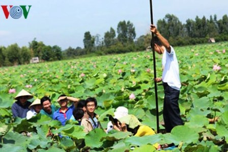 En cada fin de semana, las comunas de My Hoa y Tan Kieu del distrito Thap Muoi reciben a numerosos turistas, contribuyendo al desarrollo de la localidad. Durante los últimos años, este tipo del turismo comunitario ha progresado para satisfacer la demanda creciente de los visitantes en busca de la tranquilidad disfrutando la vida con la fragancia de los flores de loto. En la mayoría de los destinos atractivos de la provincia, la flor de loto se ha convertido en un símbolo del turismo local cuya quintaesencia se cristaliza en paisajes pintorescos y especialmente manjares, atrayendo a numerosos excursionistas ajenos. Nguyen Van Tiem, director del sitio de reliquia Xeo Quyt compartió: “El gobierno provincial prioriza el desarrollo turístico con la flor de loto como símbolo del sector. Se suministran un gran género de productos derivados del loto, entre ellos, comidas y bebidas. Los visitantes suelen contemplar la belleza de las flores de loto aquí y después disfrutan manjares e infusiones de hojas de loto”.