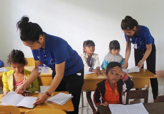 ![]() Muchos jóvenes participan voluntariamente en la alfabetización para infantes de la comuna de Hoa An, del distrito de Krong Pac