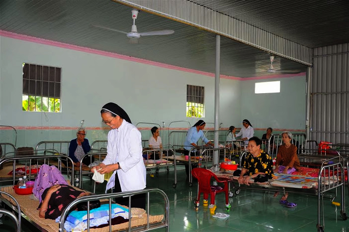 Aunque la fuente de alimentos ha sido suficiente, con una plantilla limitada que cuenta sólo con dos monjas encargadas de la sanidad, 5 de atención directa y 6 voluntarias, sus tareas diarias son arduas, desde cultivar vegetales y cocinar hasta bañar y dar de comer a las ancianas paralizadas. Además, son testigos a que comparten las emociones de las señoras enfermas del centro. Cada vez que ingresa una nueva persona, la intercambian para mejorar la comprensión mutua y hacen que se sosiegue su alma. Vo Thi Lanh, de 96 años de edad ha estado 25 años en el establecimiento. A veces su familia le lleva al hogar pero se queda por corto plazo y vuelve al Centro de atención para reunirse con sus compañeras. La señora Thi Lanh comentó: “Soy sorda y mis ojos no ven bien. Llegué a esta zona para recoger hierbas secas y ganarme el sustento. Cuando me encontró una monja, ella me llevó al centro para cuidarme. Antes, la vida aquí era difícil y nos ayudábamos mutuamente. Nos consideramos como hermanas de la familia”.