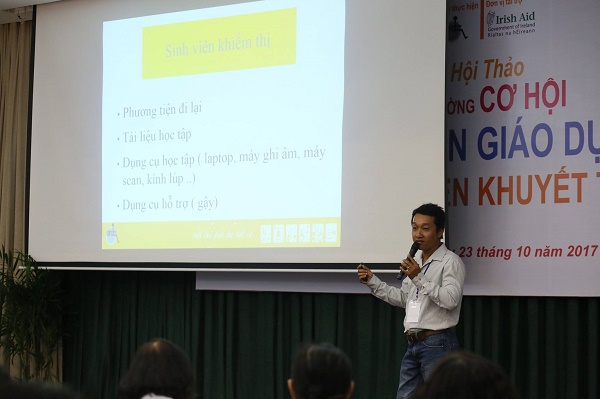 Siendo uno de los primeros participantes en el proyecto, Nguyen Dinh An, estudiante de la Facultad de Educación Especial de la Universidad de Pedagogía de Ciudad Ho Chi Minh reveló que el programa le ha ayudado a avanzar. Al principio este joven invidente dudó de su efectividad pero después de 2 años de desplegar el plan, ha logrado mejorar sus estudios y ganar más seguridad en la integración comunitaria. Además, junto a otros 38 alumnos, se beneficia del apoyo de la escuela en desplazamiento, fuentes de documentos, cursos de refuerzo de habilidades sociales, idiomas extranjeros e intercambio con las personas en la misma situación.