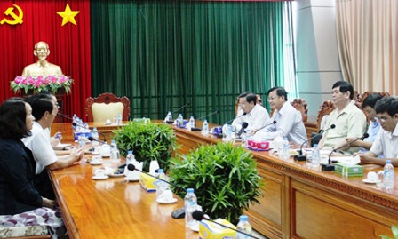 ![]() Dirigentes del Comité Directivo para los Asuntos del Oeste de la Parte Meridional de Vietnam en una reunión con Narazaki Mikio, representante de los inversionistas nipones (Foto: Lao Dong)